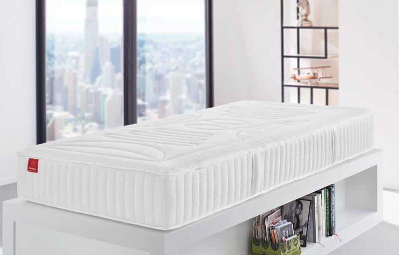 Чехол матраса выполнен в виде высококачественного чехла-бордюра и имеет плоские, пришитые двусторонние ручки, которые не выступают под простынями с резинкой. Боковые стороны чехлов-бордюров усилены специальной простежкой. Это не только визуально привлекательно, но и выгодно, когда два матраса этого типа используются в двуспальной кровати. Зазор между матрасами, так называемый зазор для посетителей, значительно сокращается.