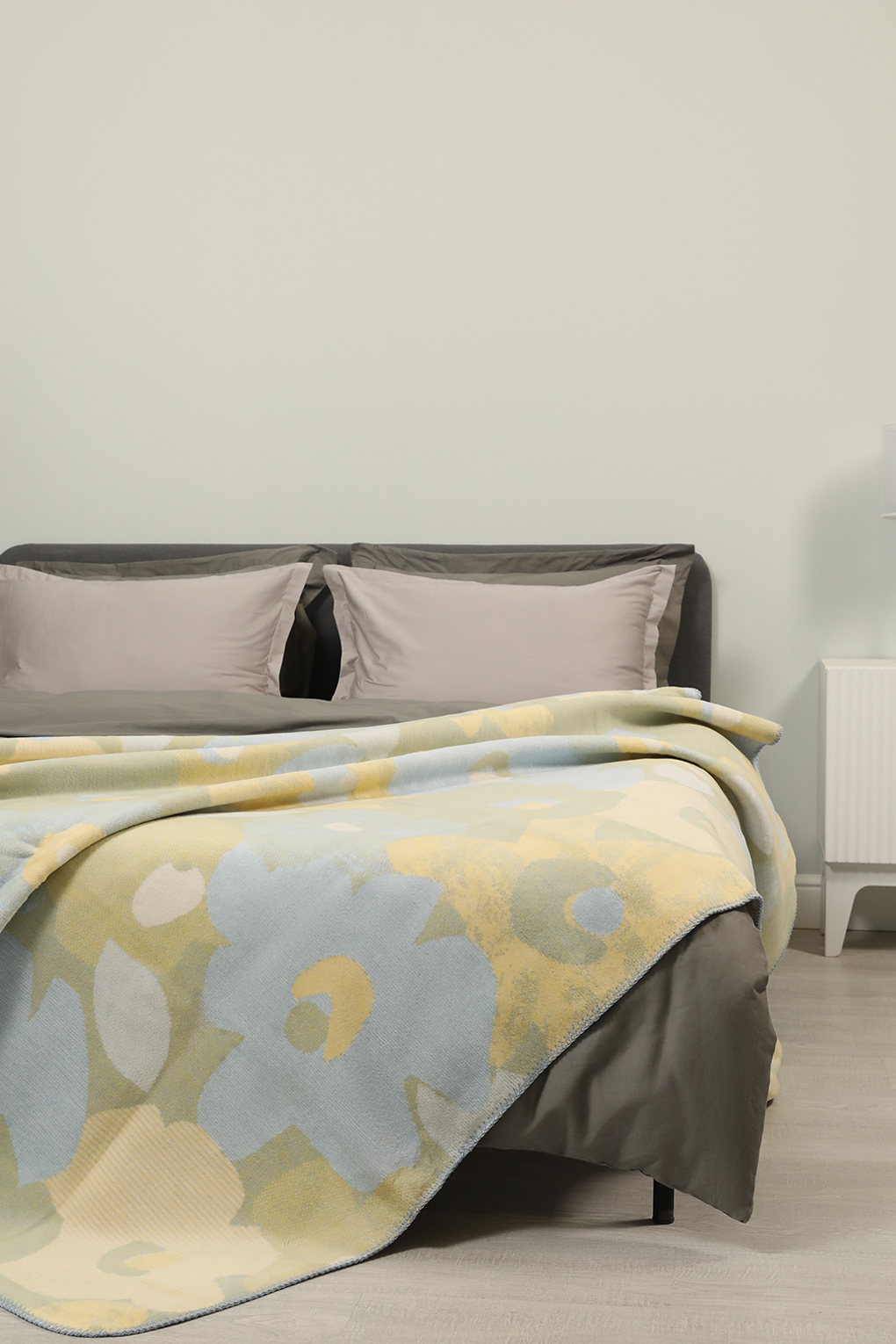 Плед Biederlack BLOOMING DAY в пастельных приглушенных тонах создаст атмосферу спокойствия и уединения.