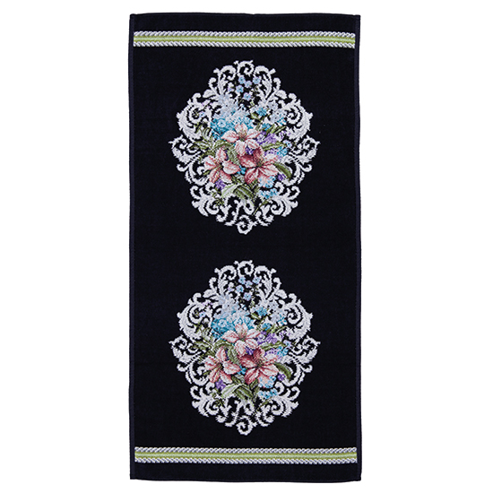 Полотенце JACQUELINE от Feiler бутоны цветов на фоне благородного черного цвета с затейливым орнаментом никого не оставят равнодушным. Изготовленое из 100% хлопка плетения шенилл, полотенце обладает отличной впитываемостью, износостойкостью и прочностью.