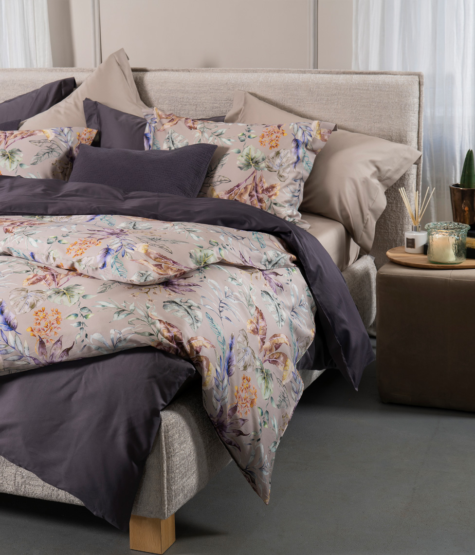 Постельное белье DecoFlux FLORA COSTERA сочетает в себе элегантный бежевый с тропической флорой.