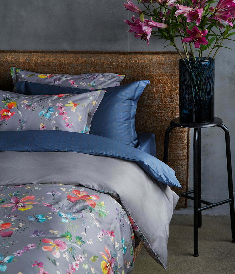 Комплект постельного белья DecoFlux WEEKEND BLOOMS с оригинальным сочетанием нейтрального серого и ярких летних красок.