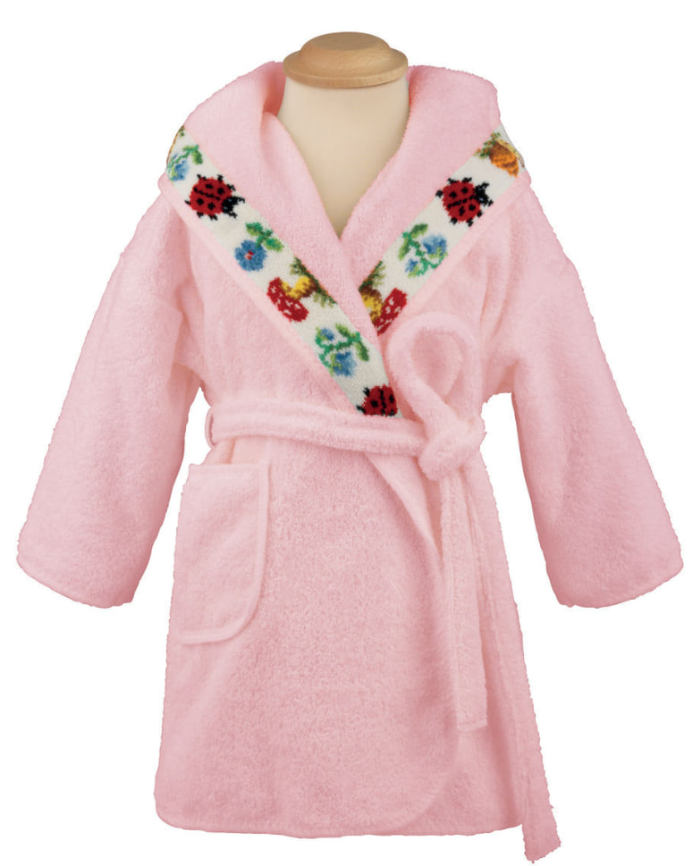 Халат украшен очаровательным рисунком, в котором сочетаются милые букашки и растения.
